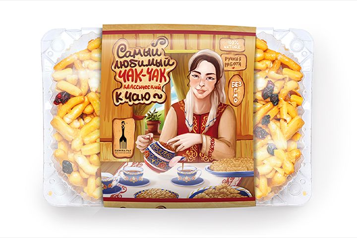 Серия ленточной упаковки для разных сладостей На упаковке меняется "пряник" с названием сладости Владелец кондитерской является лицом бренда.