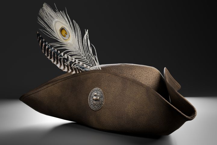 Пиратская треуголка для проекта ролевой игры с реалистичным визуальным стилем, действие которой происходит в Золотой век пиратства. Для этой 3D-модели было создано 4 уровня детализации.