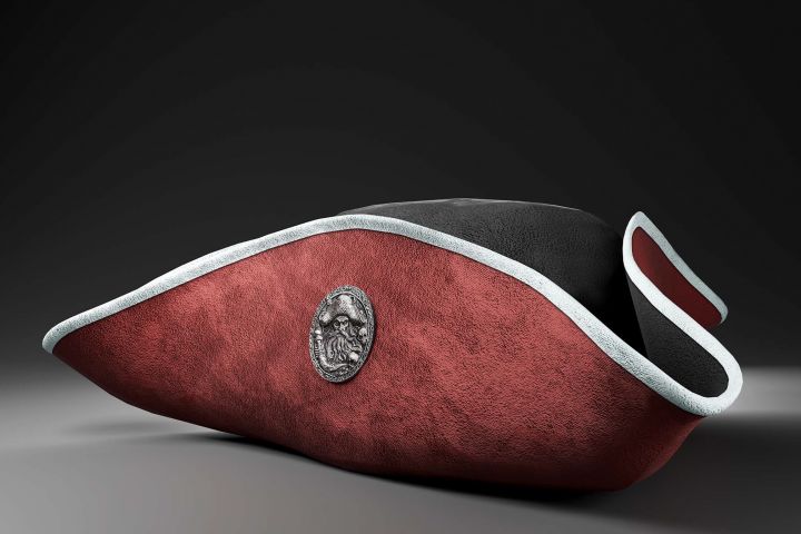 Пиратская треуголка для проекта ролевой игры с реалистичным визуальным стилем, действие которой происходит в Золотой век пиратства. Для этой 3D-модели было создано 4 уровня детализации.