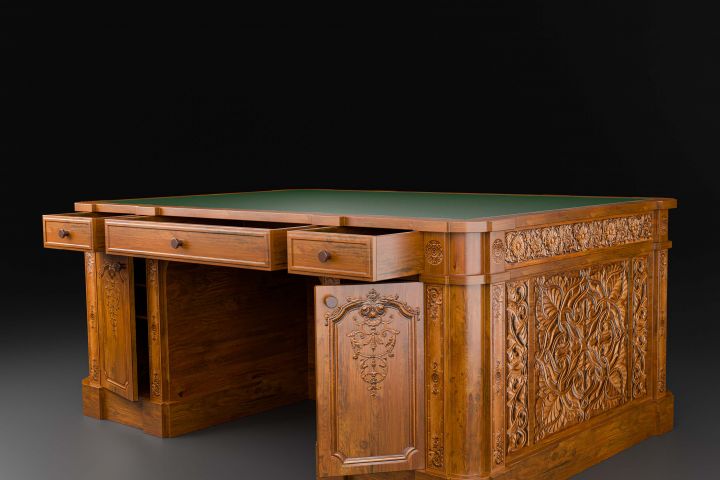 Винтажный библиотечный стол был создан для предстоящего инди-хоррора. В процессе работы я использовала технику полигонального моделирования, текстурирования и UV-развёртки для оптимизации модели. Особенно интересным этапом стало наложение текстур. На финальных этапах я занималась настройкой освещения, рендерингом и постобработкой в Photoshop, чтобы добиться нужного атмосферного эффекта и гармонично вписать его в стиль игры.