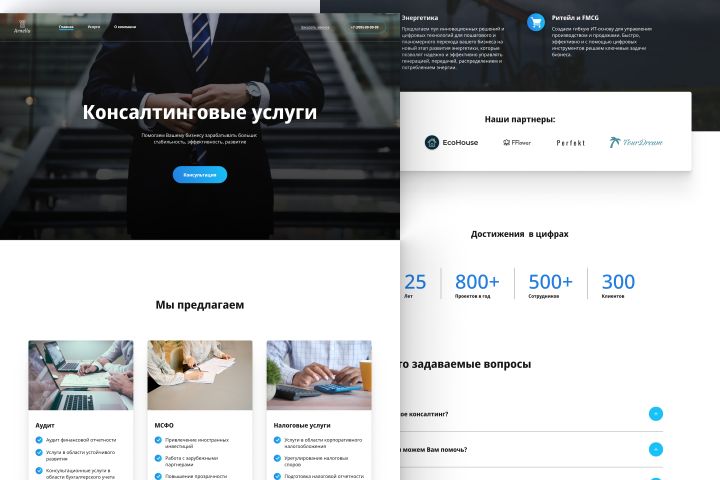Концепт-дизайн консалтинговой компании. Выполнен для демонстрации навыков.