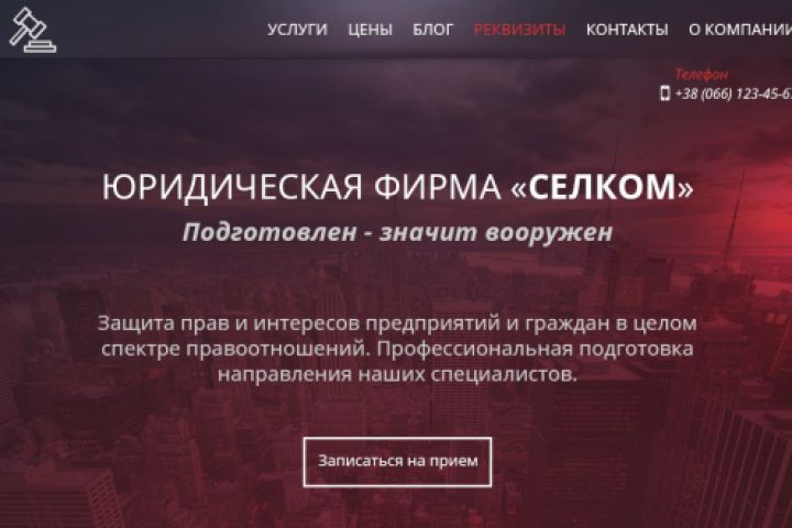 Дизайн, верстка юридической фирмы «Селком» и внедрение правильных акцентов компании.