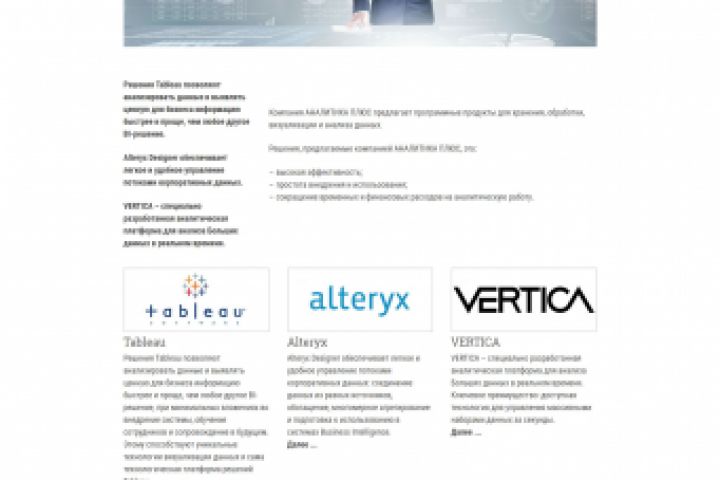 Сайт для компании по внедрению аналитического ПО, вторая страниц