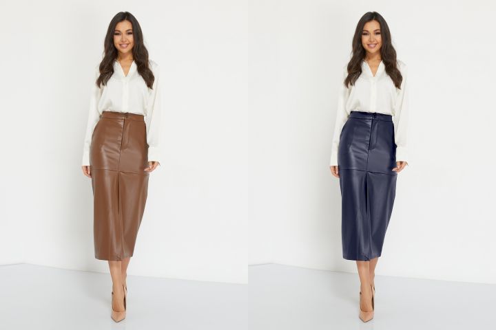 Перекрасить юбку из коричневого цвета в синий цвет. Замена цвета кожаной одежды. Юбка