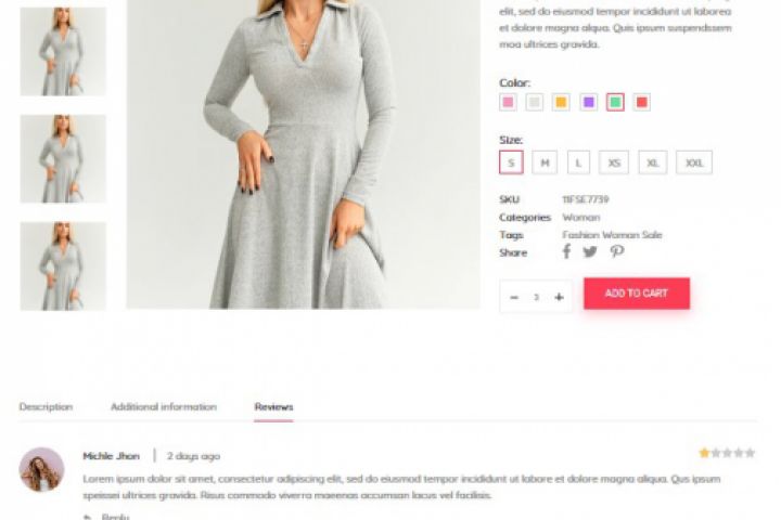 Карточка товара многостраничного интернет магазина одежды.