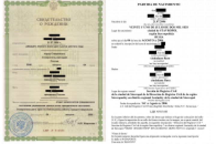 Перевод с русского языка на испанский свидетельства о рождении 2006 года, заверен в консульстве Российской Федерации в Мадриде.