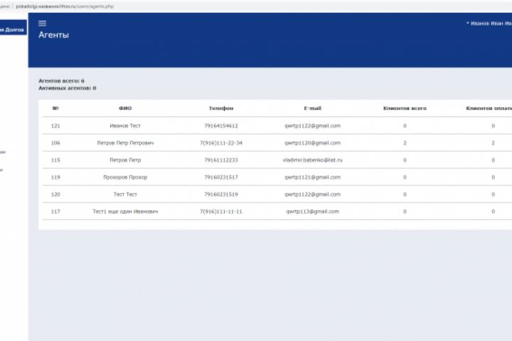 Веб-приложение (CRM-система) по списанию банковских долгов (PHP7 + MySQL) с реферальной программой