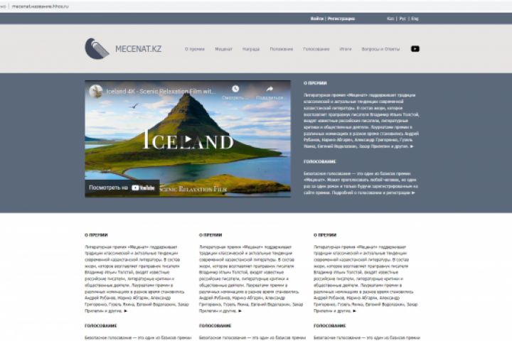 - мультиязычность (3 языка - русский, английский, казахский; русский и казахский варианты сайта совпадают, так как для казахского языка не был загружен файл с переводом)