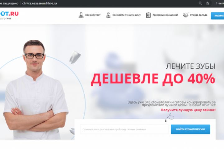 - клиники видят заявки и могут предлагать свою цену на услугу