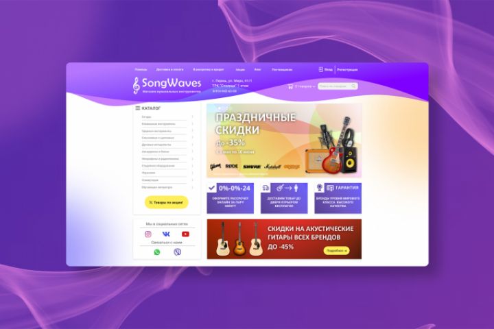 Перед нами стояла задача разработать дизайн интернет-магазина музыкальных инструментов SongWaves.
