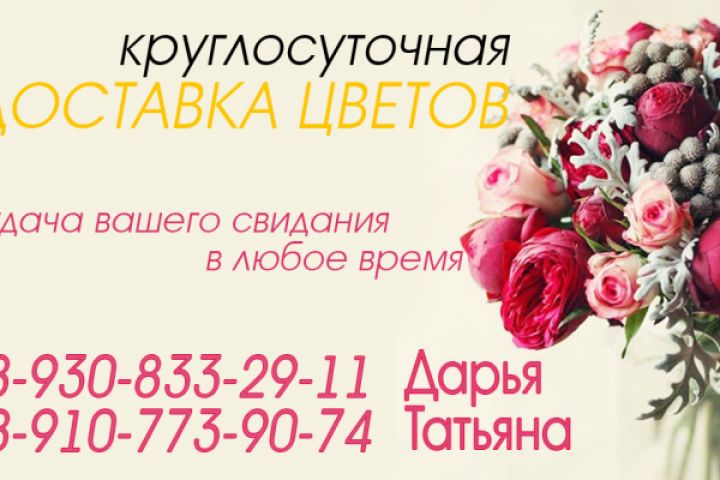 Визитки "Цветы с круглосуточной доставкой" 2 стороны
