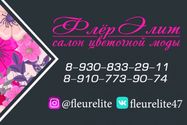 Визитки для салона цветов "Флёр Элит" 2 стороны
