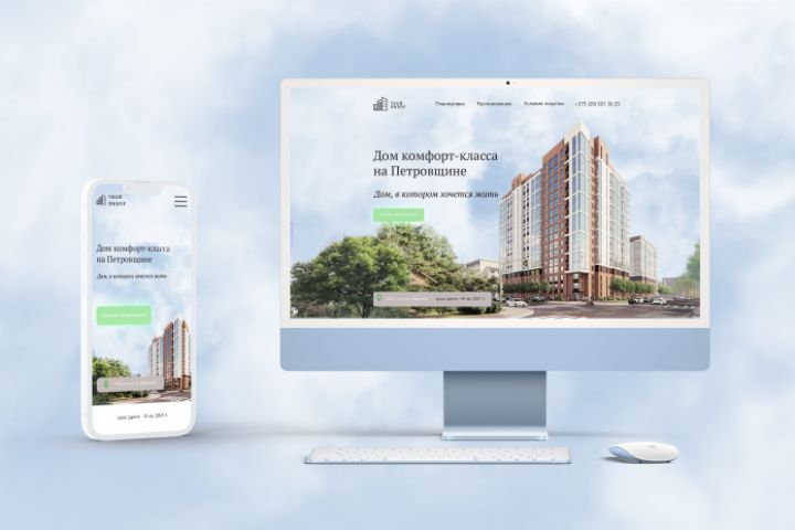 Landing page для ЖК, требовалось использовать дизайн используя светлые оттенки и сделать современный дизайн.