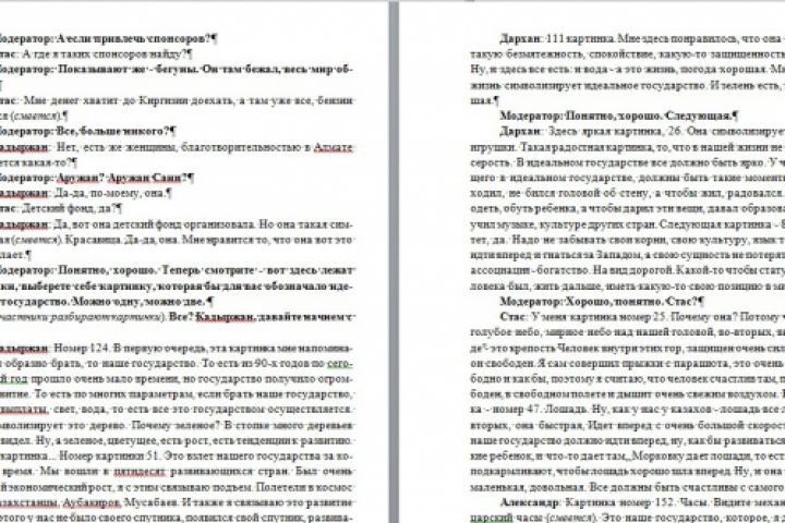 Расшифровка фокус-группы из Республики Казахстан. 8 участников и Модератор. Оформление выполнено в соответствии с требованиями Заказчика.