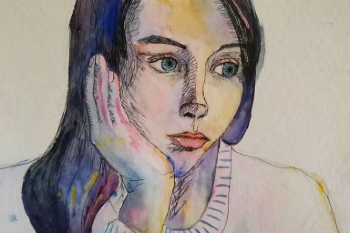 Скетч портрет акварелью и черной ручкой