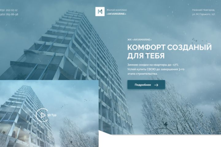 Лендинг был разработан для Жилого Комплекса "Аквамарин"