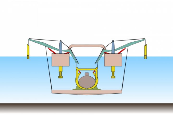 Визуализация принципа работы подъемной платформы для подъема подводных лодок.