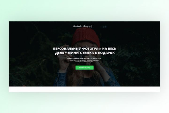 Дизайн короткого Landing Page для фотографа. Современный, понятный сайт с призывом оформить заявку на фотосессию. В работу входила разработка УТП, копирайтинг и создание макета сайта на 4 экрана