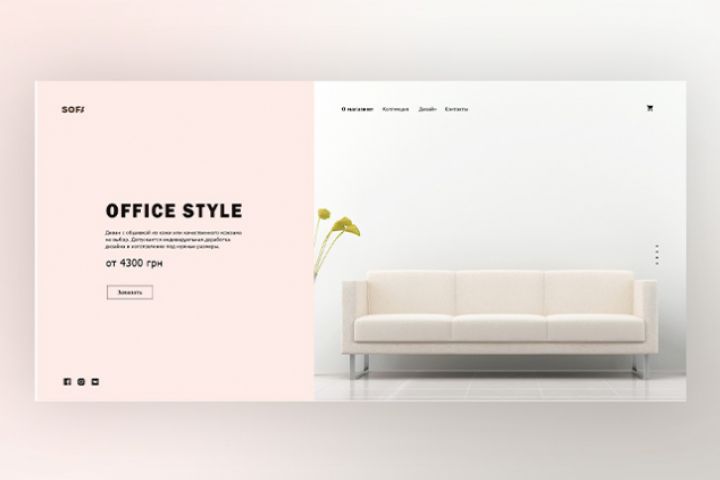 Дизайн современного лендинга для магазина дизайнерской мебели Sofa. Нужен был современный сайт в приятных нежных цветовых тонах.