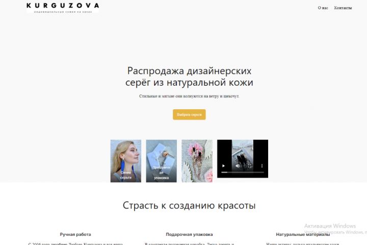 Лендинг для продвижения серёжек из натуральной кожи. За 4 дня отлажен на моем ноуте, установлен на сервере и подключены Яндекс и Гугл аналитика.