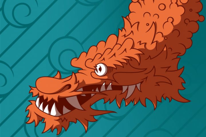 Отрисованный с нуля дракон. Работа выполнена в Adobe Illustrator.