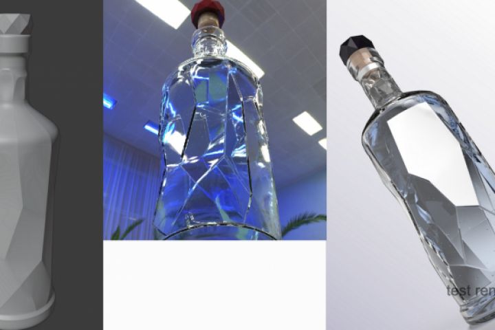 моделирование и визуализация бутылки стилизованной под ледяной кристалл