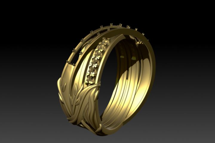 кольцо с растительным рисунком с крапанами под камни.