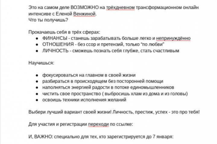 Рекламный текст. Рекламируется онлайн интенсив энергетического психолога по трансформации жизни. Есть 4 варианта текста по психотипам клиента (целеустремленный, аналитический, гамонический, эмоциональный).