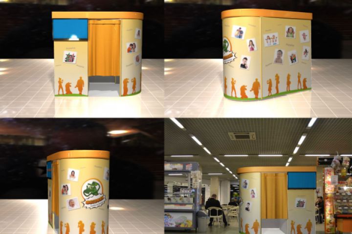 моделирование, визуализация и вписывание в фон торгового центра фотокабины