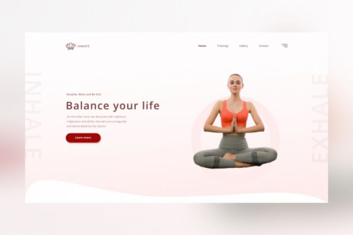Йога у большинства ассоциируется с умиротворением, спокойствием и созиданием. Поэтому я передала этот эффект с помощью воздушности в дизайне, с помощью цвета и текста который напоминает нам "Дыши, Расслабься и Будь Спокоен"