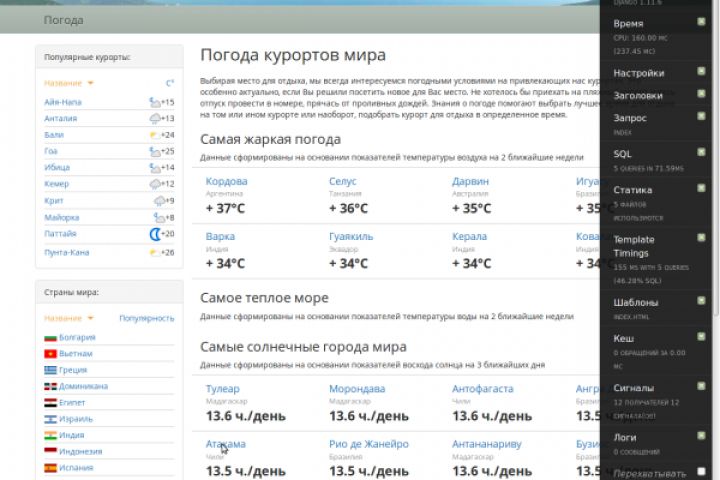 Сайт по прогнозам погоды на курортах. обновляется автоматически каждый день, используя сервис.