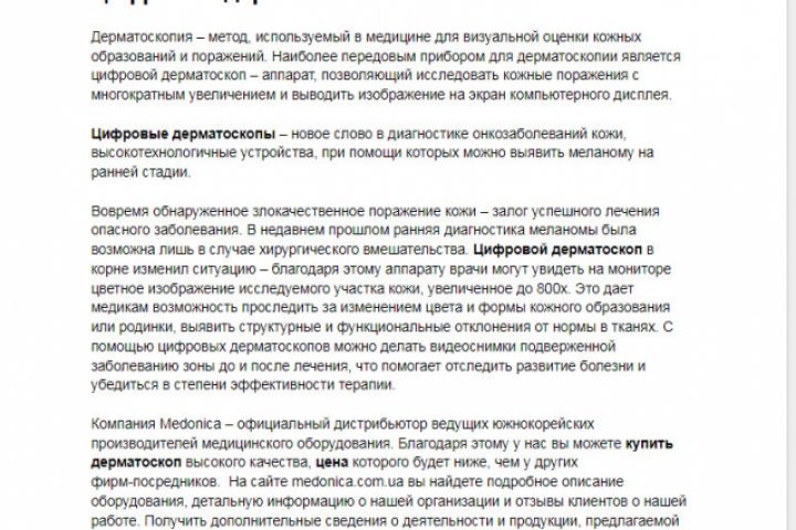 Сео-текст для сайта медицинского оборудования, содержит описание продукции и ключи.
