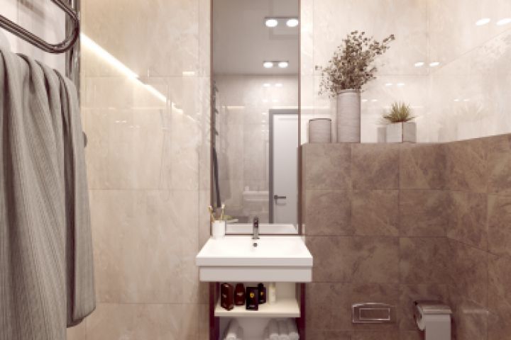Дизайн проект санузла для квартиры. В очень узкое пространство требовалось вписать душ, туалет, стиральную машину и умывальник с полками. С задачей по планировке справились на ура. Заказчик любить теплых оттенков гранита, что и было использовано в данном проекте.