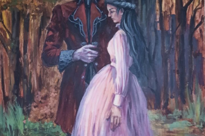 Портрет молодожёнов на холсте акрилом для квеста "Отель". Рерайт