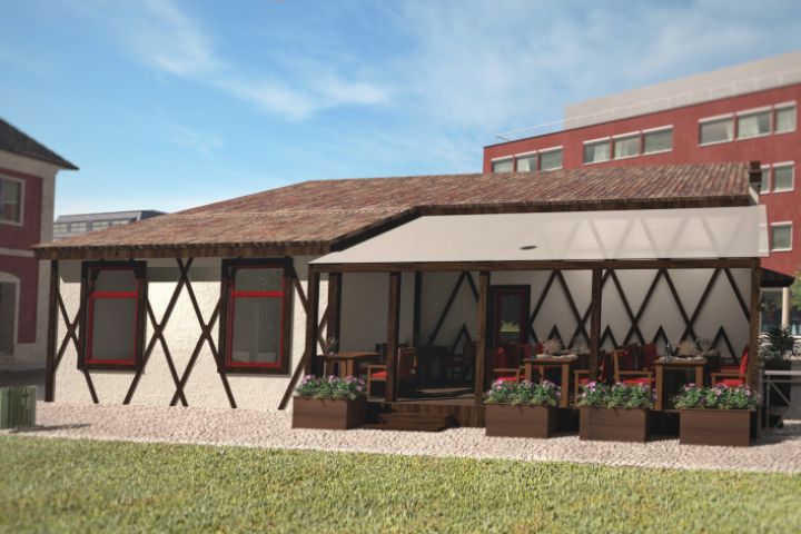 Фасад кафе в тирольском стиле летнее кафе