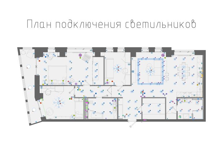 План подключения светильников трехкомнатной квартиры в ЖК "Эталон на Неве"