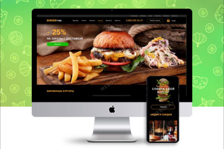 Адаптивный дизайн сайта для бургерной BURGER time. Проработан дизайн главной страницы, корзины, всех этапов оформления заказа. Больше фотографий можно увидеть https://www.behance.net/251193tany2542/projects