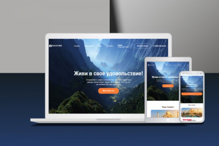 Разработка дизайна сайта "Путешествий" и полноценная верстка с адаптивом под планшет и телефон.