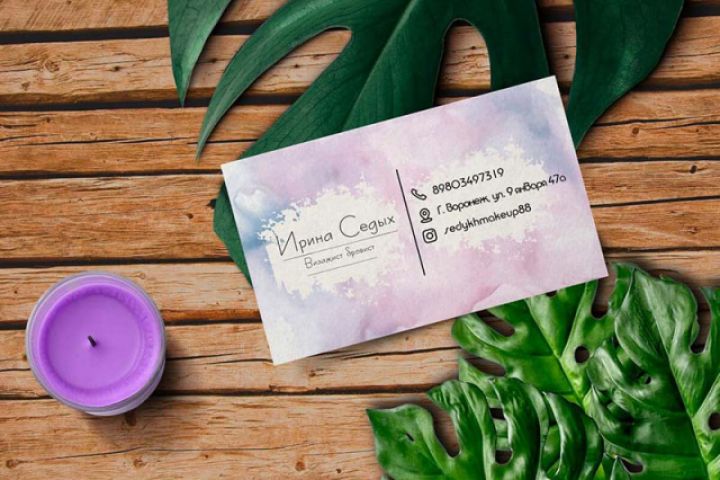Односторонняя визитная карточка для визажиста Ирины Седых.