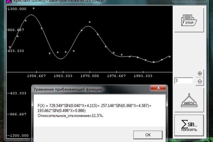 Программа «Кристалл 2006» предназначена для анализа временных рядов путём подбора регрессионной зависимости вида