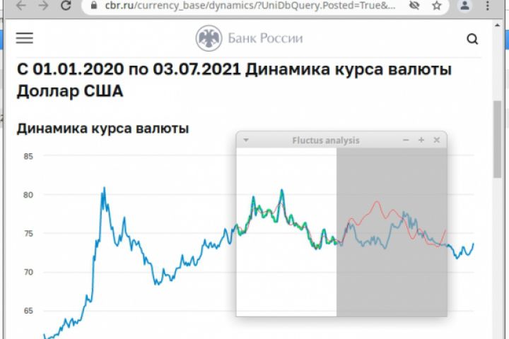 Ключевым отличием программы «Fluctus analysis» от более ранних программ «Кристалл 200X» является то, что она считывает данные не из текстового файла с числами, а получает их непосредственно сканированием области экрана, содержащей диаграмму изменения исследуемой величины. А результат обработки данных выдает в виде графика приближающей функции, накладываемого поверх диаграммы.