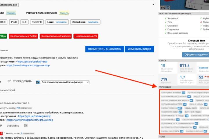 3) Делаем грамотное название, описание, теги, хештеги опираясь на наше ядро