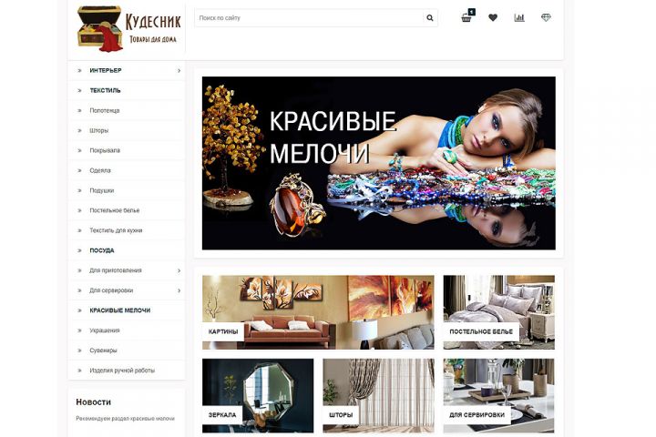 Разработка и наполнение интернет-магазина товаров для дома Кудесник (Битрикс)