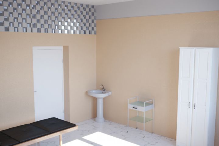 Требования: в помещении 13 кв. м. поставить раковину, манипуляционный столик, шкаф и 3 кушетки. Максимально в простом для больницы виде помещении.
