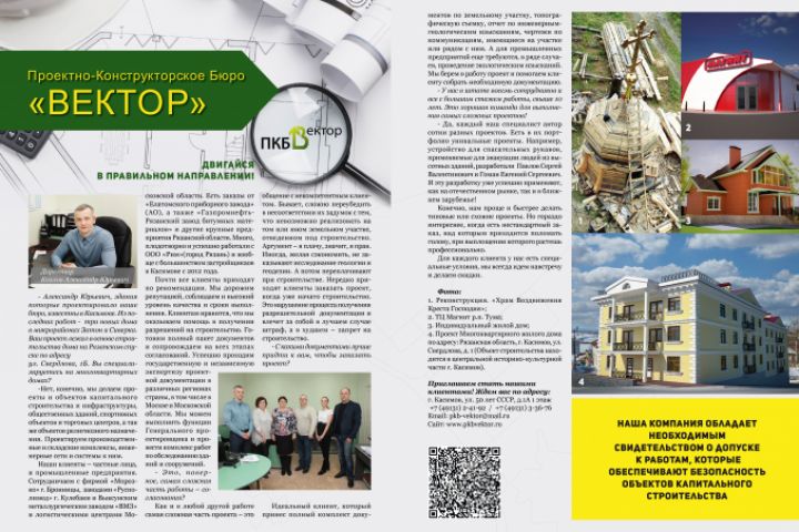 Дизайн и верстка разворота журнала о предприятиях и предпринимателях города