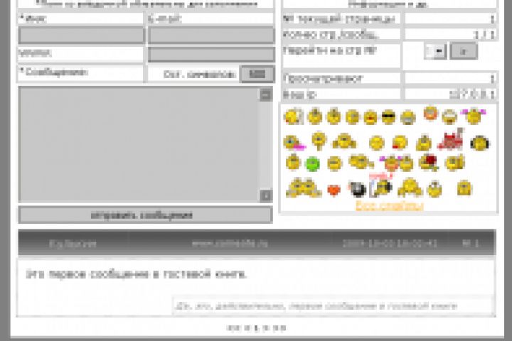 8. Навигация по гостевой книге возможна либо ч/з раскрывающийся список, либо ч/з ссылки навигации << < 1 2 3 4 5 6 > >>.