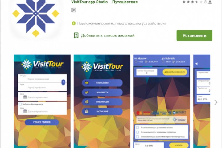 VisitTour - Билеты на автобусы, приложение разработанное для Android на языке Java, используется технология API , подключение оплаты билетов через платежную систему WebPay