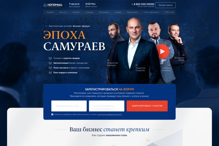 Дизайн для онлайн бизнес форума «Эпоха самураев» 🥷 📈 · Дизайн лендинга · Баннеры для соцсетей · Заставки и материалы для онлайн трансляции