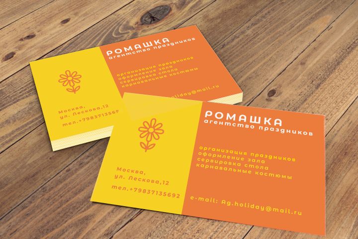 Для начинающего свою деятельность агентства праздников "Ромашка" был разработан дизайн визитной карточки, нацеленный на