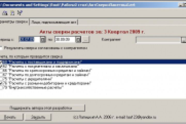 Акт сверки пакетный (групповой) по всем контрагентам за период. Удобно в конце года, когда идет массовая сверка расчетов. Алгоритм на основе стандартного отчета "Акт Сверки"